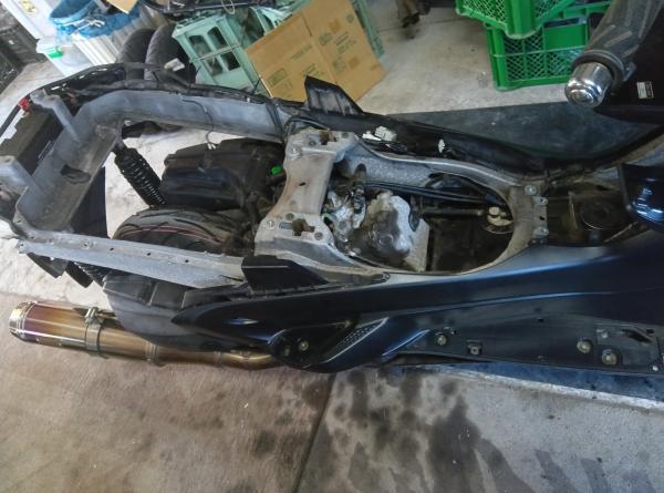 始動確認して外装取付作業。
